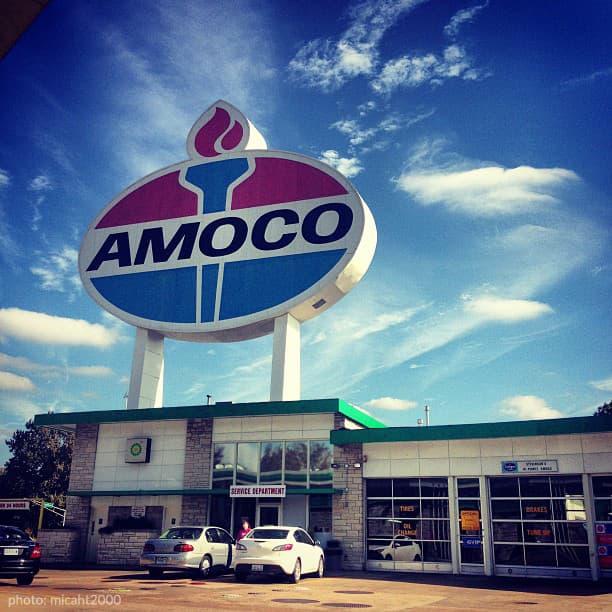 Amoco Oil company may be long gone but this titanic sign continues to advertise - albeit over a totally different company’s gas station!
